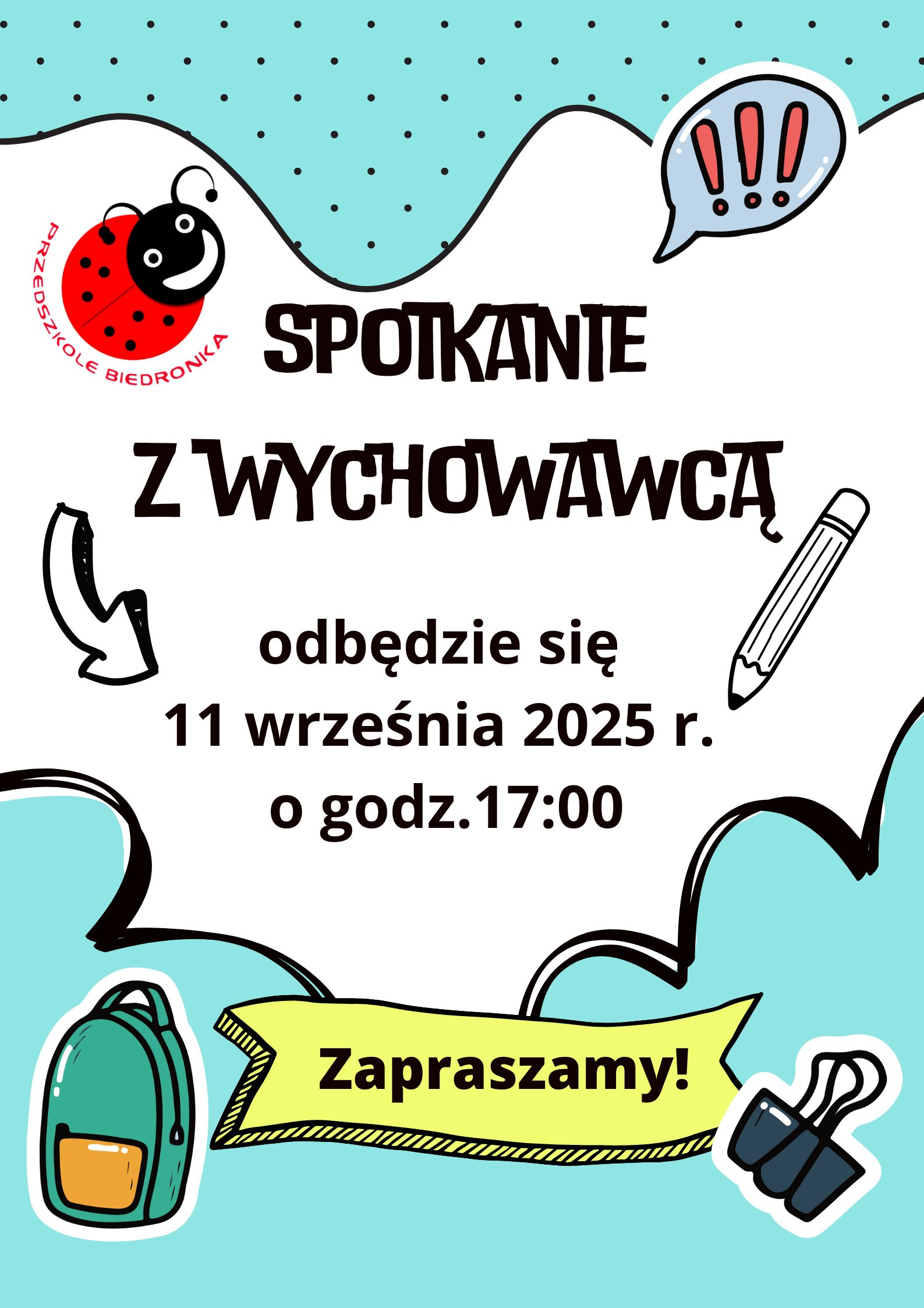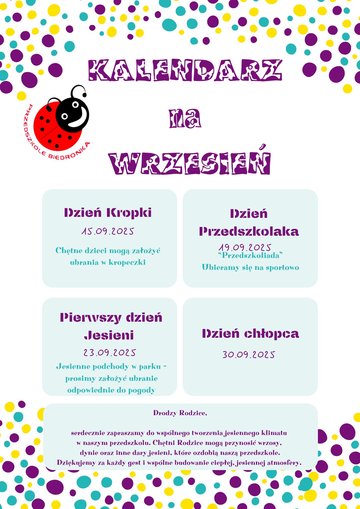 od 2 czerwca 2025 r. do 6 czerwca 2025 r. – informujemy rodziców o przyjęciu dziecka na dyżur.